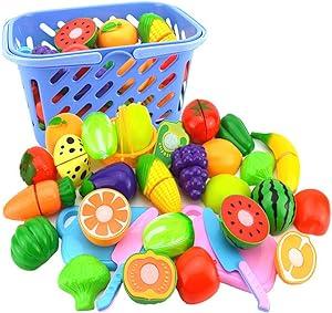 NIWWIN Set de Plats à Jouer pour Enfants, Légumes et Fruits Jouets coupés à Dessiner - Accessoires de Cuisine 23 pièces, avec Un Couteau et Un Beau Panier : Amazon.com.be: Jouets