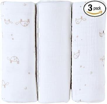 Noukie's - Lot de 3 Langes Mix Match - Mousseline Bio - Motifs Tortues