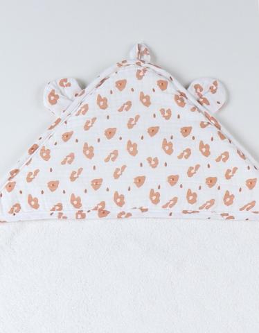 Set de bain léopard en éponge et mousseline, écru/terracotta | Noukie's