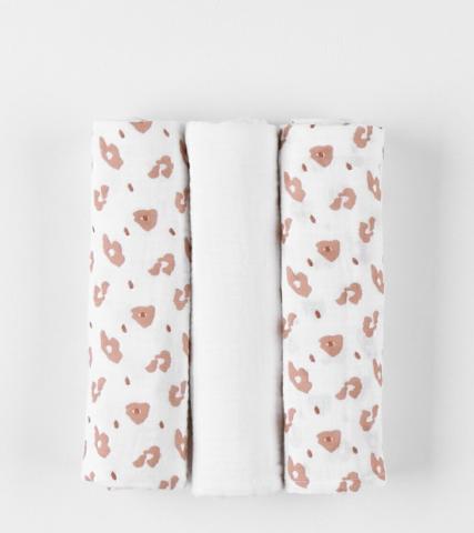 Set de 3 langes en mousseline de coton, blanc/terracotta | Noukie's