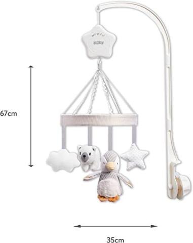 Nuby Musical Baby Mobile with Adjustable Arm to Fit All Cribs.Cute White and Grey Plush Characters Including Pebbles The Penguin and Friends (Pack of 1) : Amazon.com.be: Baby Products