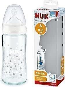 NUK First Choice+ biberon en verre | 0-6 mois | Contrôle de température | Tétine en silicone | Valve anti-coliques | Sans BPA | 240 ml : Amazon.fr: Bébé et Puériculture