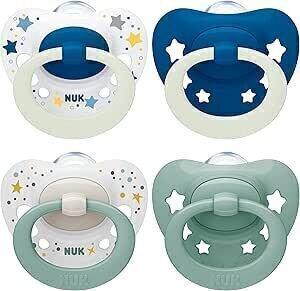 NUK Signature Day & Night Tetine pour bébé | 0-6 mois | Apaise 95 % des bébés | Sucettes en silicone sans BPA, en forme de cœur | Brille dans le noir | Étoiles | Lot de 4 : Amazon.fr: Bébé et Puériculture