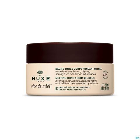 Répare, nourrit et diminue la sensation d'irritation. Baume soyeux et fondant qui au contact de la peau se transforme en huile de massage. Contient du miel et des huiles végétales précieuses. Pour les peaux très sèches.