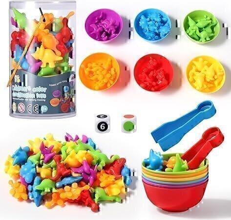 Oderra Montessori-48 pièces Dinosaure Comptage et Tri, Jouets éducatifs avec gobelets, dés et Pinces pour Apprendre à Compter Les Couleurs motricité Fine, Jeux Montessori : Amazon.com.be: Jouets