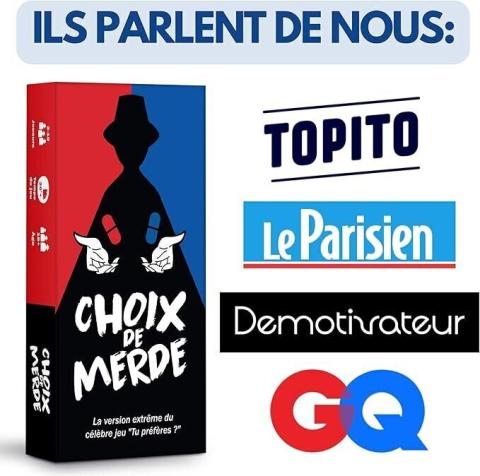 Achetez Oh Happy Games Choix de M*rde – Le “Tu Préfères” Version Extrême – Dilemmes Impossibles & Humour Noir – Jeu de Société Adulte – Soirées Entre Amis – Jeu d’Ambiance Cultissime: Amazon.fr ✓ Livraison & retours gratuits possibles (voir conditions)