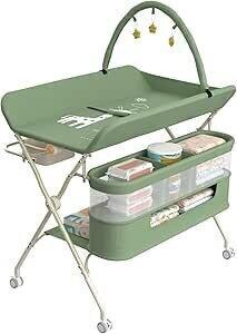 OHMG Folding Changing Table, Changing Mat with Side Basket and Wheels and 3 Toys, 5 Adjustable Height Nappy Organizer, Multifunctional Storage for Children's Bedrooms, 75 x 68 x 83-91 cm : Amazon.fr: Baby Products