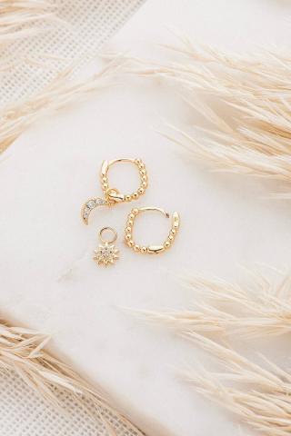 Vendu à l'unité. Petit anneau ovale doré à billes & pendentif mini étoile sertie (il peut s'enlever pour se mixer avec d'autres créoles).Diamètre environ 12mm. Plaqué or.