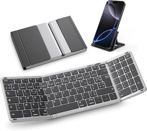 OMOTON Clavier Bluetooth Pliable avec Pavé Numérique, Clavier sans Fil AZERTY Rechargeable, Pleine-Taille, Portable Keyboard pour Android Windows iOS Mac iPad Tablette PC, Gris sidéral : Amazon.com.be: High-tech