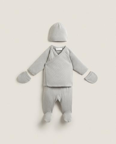 100% cotton newborn set. Includes a romper, beanie and mittens inside a cotton bag. - See all - NEWBORN - KIDS | Zara Home Belgium