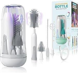 Orzbow Elektrische babyflessenborstelset, draagbaar, met UV-sterilisator voor flessen, melkschuim, rietborstel en tepelborstel, drooghouder voor flessen, grijs : Amazon.com.be: Babyproducten
