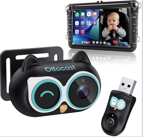 Caméra de surveillance bébé Ottocast Mini 1080p, affichage en direct sur l'écran de la voiture,