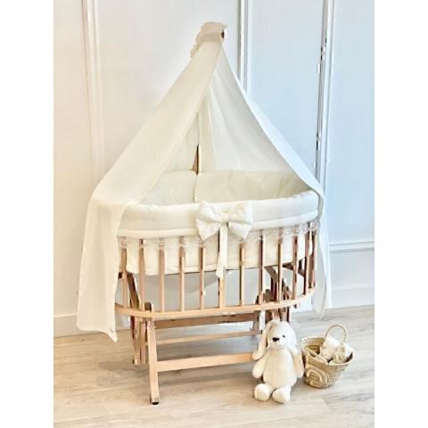 Gun je baby en jezelf de wieg van je dromen! Het ovaal wiegje met wiegbekleding van BabyRace is dé familiewieg die je lang kunt gebruiken...
