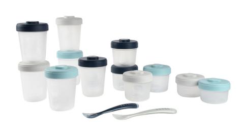 Lot de 12 petits pots de conservation 1er âge Béaba, pour conserver les purées et compotes maison – Couvercles noirs et verts