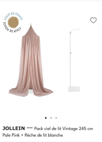 Ce produit est extrait d'une liste de naissance déposée sur Kadolog. Kadolog permet de créer des listes de naissance en toute liberté. Il est possible d'ajouter toutes vos envies cadeaux et de recevoir les dons directement sur votre compte. Avec les dons reçus, vous êtes alors libre d'aller acheter vos produits (comme ce 'Pack ciel de lit Vintage 245 cm Pale Pink + flèche de lit blanche ') où et quand vous le souhaitez.