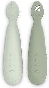 Suavinex, Pack de 2 Pré-cuillères d'Apprentissage, Cuillères 1er Age en Silicone, avec Pointe Plate Texturée, Ergonomiques, Forme Symétrique, Compatibles Lave-Vaisselle, +6 Mois, Vert, 2 Unités