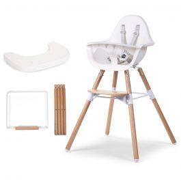 La chaise Evolu 2 de Childhome, le set de pieds longs + repose-pieds et la tablette ABS avec napperon dans un pack avantageux.