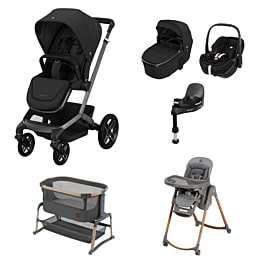 Avec le Pack Naissance Fame, vous aurez tous les éléments essentiels aux premiers mois et aux premières années de vie de votre enfant. Avec un siège auto, une poussette et une nacelle, vous serez prêt pour toutes les aventures. Et aussi pour les repas et le coucher grâce à la chaise haute et au berceau cododo.