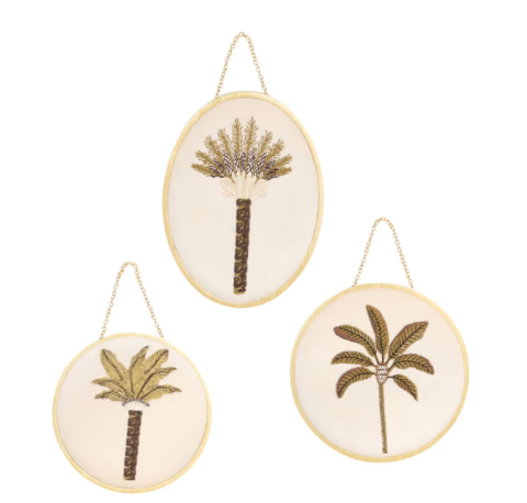 Déco murales broderies palmiers écrus, verts et dorés (x3) PALMAE sur Maisons du Monde. Piochez parmi nos meubles et objets déco et faites le plein d’inspiratio