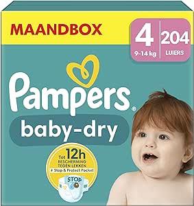 Pampers Maat 4 Luiers (9-14 kg), Baby Dry, 204 Luiers, Met Een Stop & Protect Pocket Aan De Achterkant Die Tot 100% Bescherming Biedt Tegen Lekken ’s Nachts : Amazon.nl: Baby Products