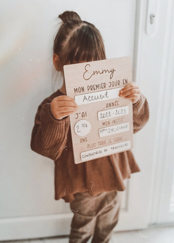 Jolie pancarte personnalisée, réalisée par la main d'une créatrice locale pour faire une jolie photo de la rentrée chaque année à la crèche ou à l'école