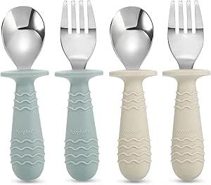 PandaEar 4 Set Bébé Toddler Ustensiles en Acier Inoxydable Silicone Argenterie Cuillère Fourchette pour Bébé Toddler Sans BPA avec Conception Anti-étouffement en Silicone : Amazon.com.be: Cuisine et maison