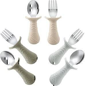 PandaEar 6 Stücke Kinderbesteck Esslernbesteck ab 1 jahr| Silikon Edelstahl Baby Besteckset Löffel Gabel mit Silikon Halten Anti-Choke Design, BPA Frei Lernbesteck : Amazon.de: Games