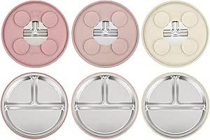 PandaEar Lot de 3 assiettes en acier inoxydable pour tout-petits, assiettes à ventouse divisées pour le sevrage par bébé, assiettes antidérapantes avec ventouse pour l'alimentation, passent au : Amazon.com.be: Bébé et Puériculture