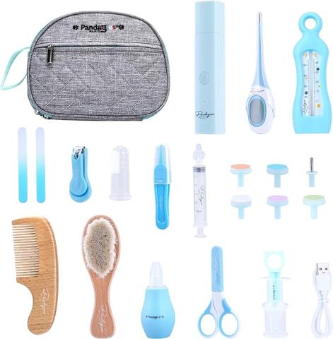 Pandagies PARIS - Verzorgingsset voor baby's, geboorte, professioneel, 13 accessoires, complete vlieg, babyvijl, elektrische nageltas, toilettas, baby, zwangerschap, badthermometer, kinderen, kam voor : Amazon.com.be: Babyproducten