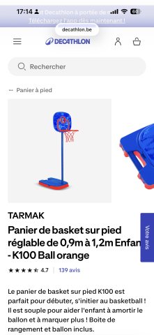 en toute liberté. Il est possible d'ajouter toutes vos envies cadeaux et de recevoir les dons directement sur votre compte. Avec les dons reçus, vous êtes alors libre d'aller acheter vos produits (comme ce 'Panier de basket sur pied réglable de 0,9m à 1,2m Enfant - K100 Ball orange | Decathlon