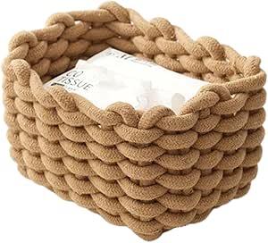 Panier de rangement en corde de coton tissée marron