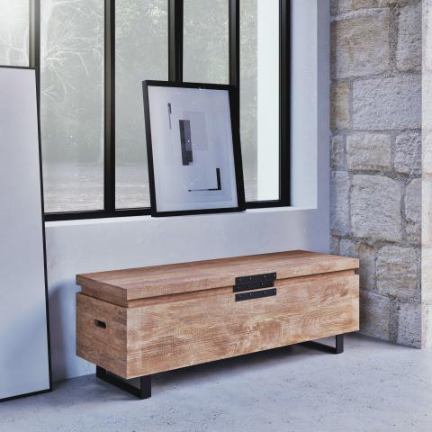 Le coffre en bois de manguier et métal ANNA est un meuble de rangement élégant et pratique qui s'intégrera parfaitement à votre intérieur.