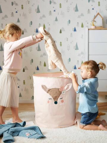 Délicat et raffiné ce panier de rangement XL offre une belle solution pour ranger les jouets des enfants ! Avec ses oreilles en volume, ses fleurs appliquées et ses détails dorés, on est certains qu'il aura un franc succès !