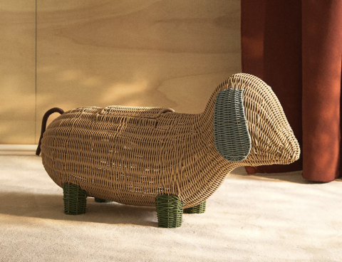 Panier de rangement pour enfant en forme de chien Teckel. Doté d'un couvercle supérieur.