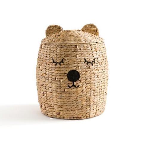 Décoratif et fonctionnel, le panier Ourson en jacynthe d'eau tressée apportera une touche déc dans une chambre d'enfant. Avec son amusant motif tête d'ours, les enfants aimeront lui confier leurs jouets préférés.Description • En jacynthe d'eau tressée • Panier avec couvercle • Motif tête de petit ours, avec des oreilles sur le couvercleDimensions • Diamètre : 40 cm • Hauteur : 50 cmDimensions et poids du colis1 colis • L42 x H50 x P42 cm. 3kg