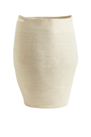 Panier à linge en jute avec deux poignées. Diamètre 35 cm environ, hauteur 65 cm.