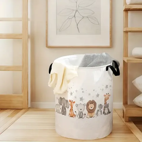 Boîte de rangement imprimée motif girafe et éléphant, adaptée à la décoration de chambre, paniers, boîte circulaire multi-scènes pour vêtements et livres familiaux, assortie universellement aux pièces, panier à linge pratique