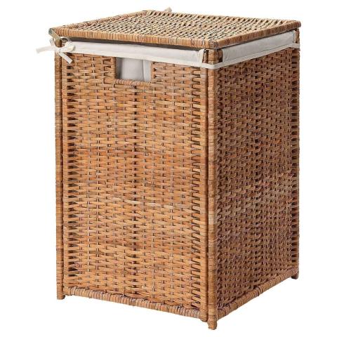 BRANÄS Panier à linge, intérieur tissu, rotin. Les pieds en plastique protègent le panier à linge de l'humidité. Chaque panier à linge a été tissé à la main, ce qui le rend unique.