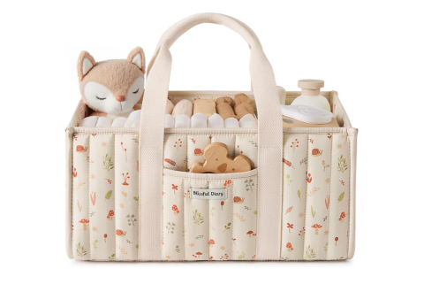 Blissful Diary Baby Storage Basket, Nappy Organizer for Changing Table, Storage Basket for Baby Diapers and Baby Wipes Baby Shower Gift, Cream Wood