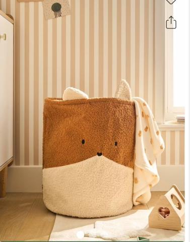 Un panier souple et tout doux pour ranger les jouets, les livres ou les peluches. Avec son visage de renard brodé et ses oreilles en relief, il apportera une touche de fantaisie à la chambre de votre enfant.