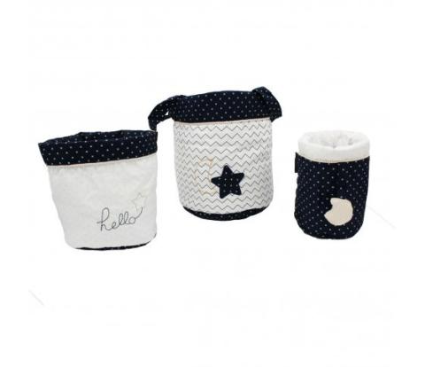 Laissez-vous séduire par les panières gigognes Hello : parfaites pour un cadeau de naissance, elles seront très utiles pour ranger tous les produits de soins sur la table à langer.