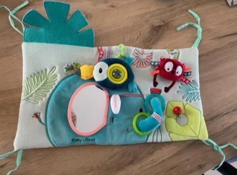 S'accroche au parc ou au lit (doté d'un hochet, miroir, anneau, élastique, bruit papier pour amuser bébé)