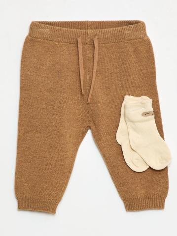 Pantalon uni en maille + chaussettes - 2 pièces - Beige - 10.00€ - Livraison gratuite en magasin Kiabi.