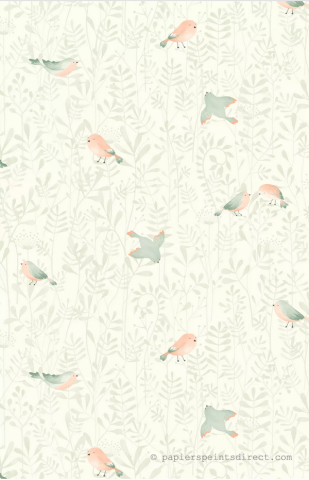 Papier peint Oiseau Feuillage vert amande rose - Once Upon A Time de Casadéco
