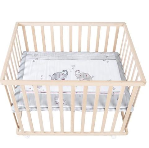 Parc Bébé Rectangulaire en Bois 75 x 100 Jumbotwins + Tapis de Parc Bébé et Roues Avec Freins - Base Ajustable en Hauteur