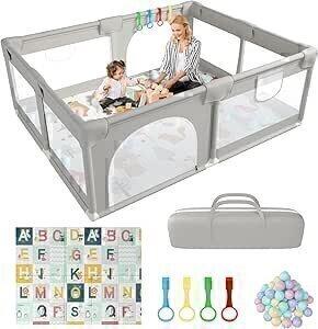 Parc Bebe avec Tapis de 180 x 150 cm,Large Parc Enfant, Intérieur et Extérieur Parc pour Bébé avec Maille Douce et Respirante, Comprenant 50 Balles,4 Poignées : Amazon.fr: Bébé et Puériculture