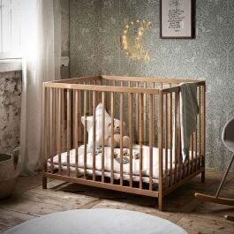 Le parc de jeux pour bébé en bois couleur noyer s'intègre facilement à toutes les décorations grâce à son design simple. Un parc bébé crée un espace de jeu sûr pour bébé. Le parc «NOIX» est muni de 4 roulettes avec freins. Plancher réglable trois hauteurs différentes.