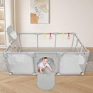 Parc Bebe,XXL Pliable Parc Modulable Bébé Avec Barrieres/Filets/Balle Océanique/4 poignées,Playpen extra grand pour bébés et tout-petits,parc enfant,180 * 120 * 66 cm-gris clair : Amazon.com.be: Bébé et Puériculture
