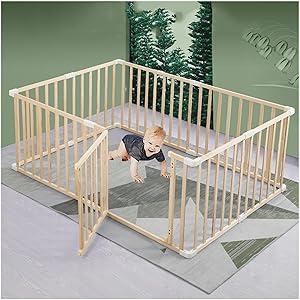 Parc pour bébé avec porte, 120 x 150/150 x 200/180 x 220 cm, clôture en bois naturel, parc pour enfants, grand parc pour bébés et tout-petits, 150 x 200 cm : Amazon.com.be: Bébé et Puériculture