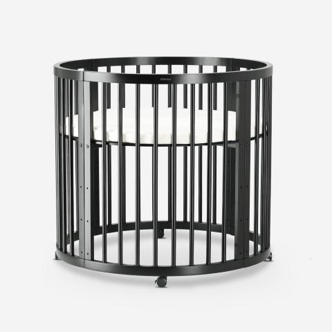 Parc pour enfants rond en bois Willow avec matelas et roulettes, finition noire. Compact et peu encombrant, pour bébés et tout-petits. En savoir plus.